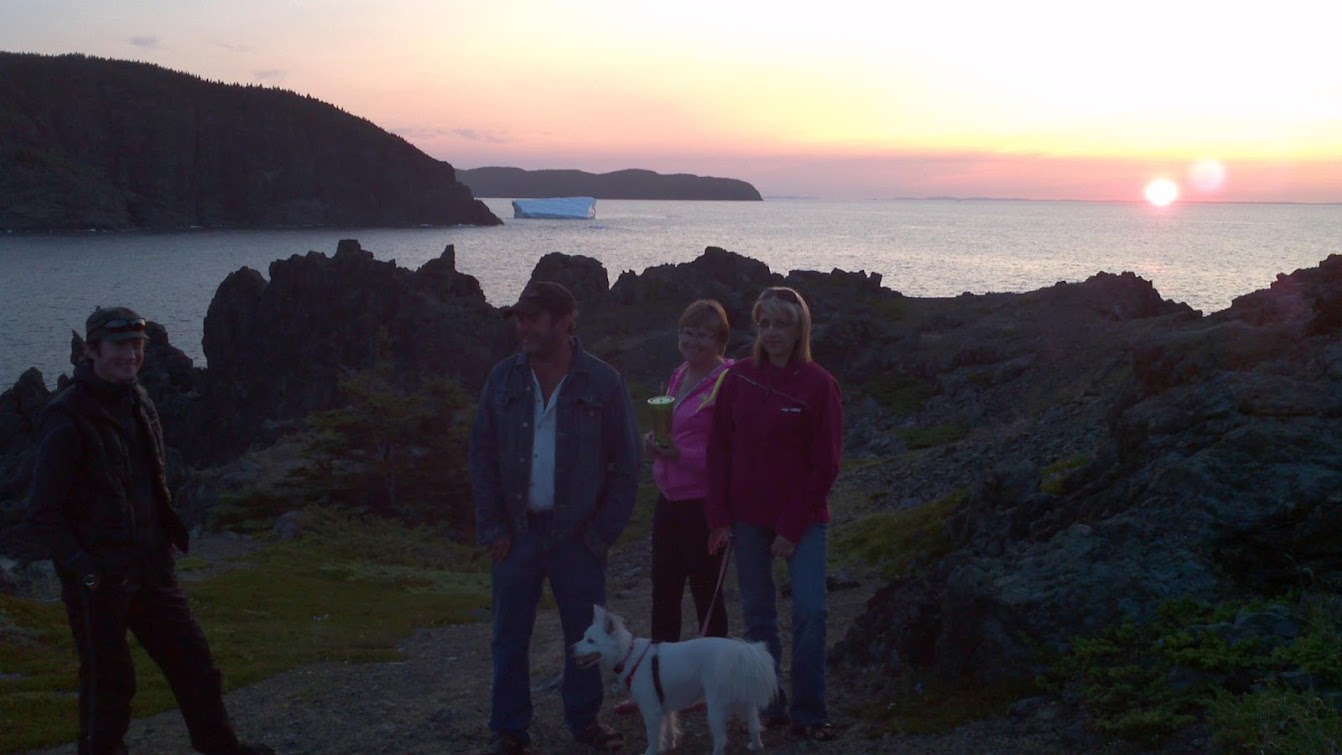 From there we went through the old cemetery, past the headstones of my 3x great-grandparents (James Wells b.1790 - d.1871), and on up to the lookout. This vantage point offers views of the North Atlantic where the next landfall is Greenland. That is where all these icebergs are coming from.